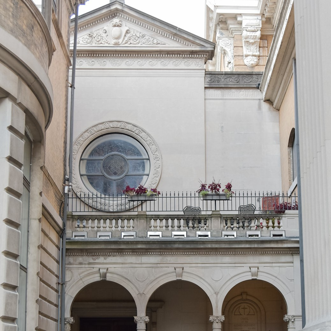 Parking is available behind the Cathedral of Saints Peter and Paul as well as on Meridian St.